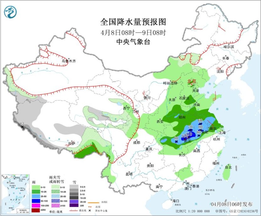 人民网北京4月8日电 (记者温璐、高清扬)据中央气象台网站消息亚洲二区在线,预计4月8日至4月10日,江汉、江淮、江南北部及重庆等地的部分地区有中到大雨,局地暴雨或大暴雨,并伴有短时强降水、雷暴大风或冰雹等强对流天气。中央气象台今晨同时发布了暴雨蓝色预警和强对流天气蓝色预警。