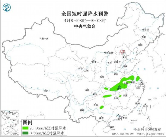 中央气象台4月8日6时发布暴雨蓝色预警: